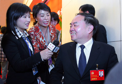 周济:各位新闻界的朋友,女士们、先生们,昨天上午,胡锦涛总书记在十七大报告中,号召全党要高举中国特色社会主义伟大旗帜,以邓小平理论和“三个代表”重要思想为指导,深入贯彻落实科学发展观,继续解放思想,坚持改革开放,推动科学发展,促进社会和谐,为夺取全面建设小康社会新胜利而努力奋斗。报告进一步指明了我们前进的方向,鼓舞人心,催人奋进。