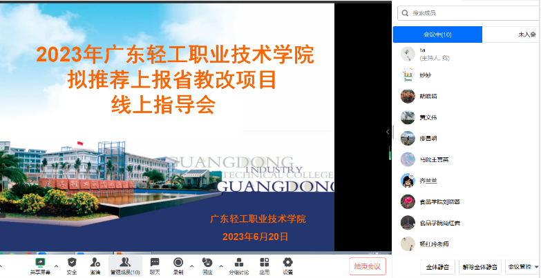 为进一步提升省教育教学改革项目质量,提高省教改项目立项率,6月20日至6月21日,我校组织召开了2023年省教育教学改革校内推荐项目专家指导会。指导专家组由广东省教育研究院主任杜怡萍、广东省教育研究院研究员黄文伟、岭南师范学院现代职业教育发展研究所所长董仁忠组成。指导会采用线上腾讯会议方式召开,共19个推荐项目参与项目指导会,包括“基本推荐项目”15项、“兼职教师”推荐项目4项,指导会分为3个场次进行。