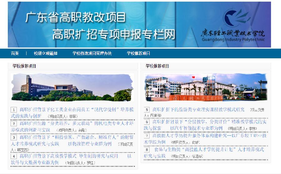 在项目申报期间,教务处协助申报网站建设,按照项目评审要求,建立“广东省高职教改项目高职扩招专项申报专栏网”(http://projects.zlgc.chaoxing.com/123123123123123)。(文/高职所倪尔妍)